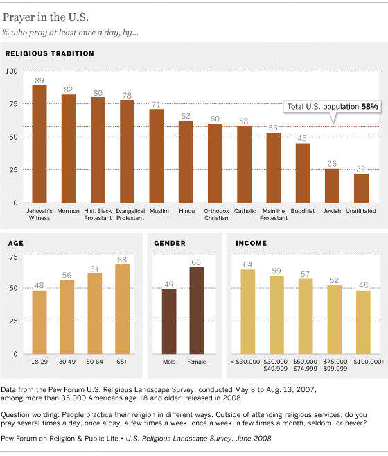 58% of Americans pray every day. Your faith tradition, gender, age and income reflects you tendency to join in prayer. Allen Bingham November 28, 2011 Published by Allen Bingham I am a follower of Jesus, husband, father, and pastor of Haymount United Methodist Church in Fayetteville, North Carolina, USA. View all posts by Allen Bingham Published November 28, 2011